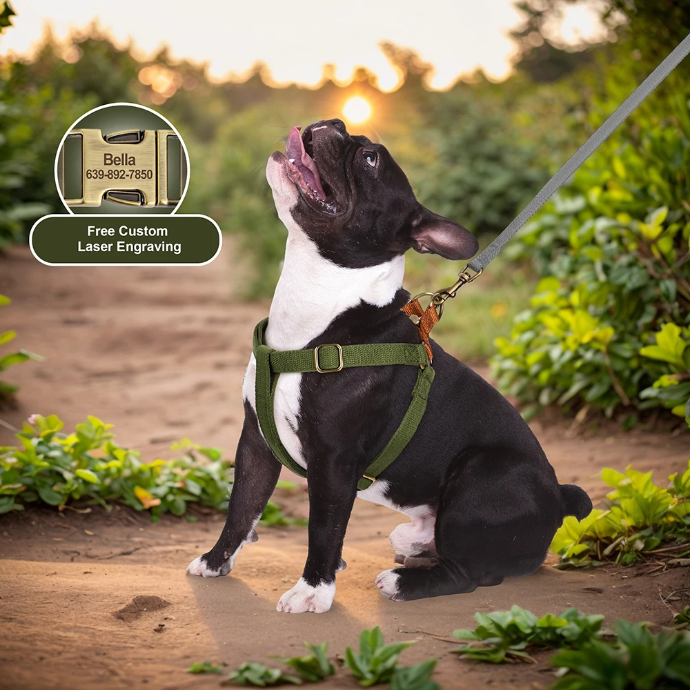 New Custom Dog Harness Reflective Nylon Dog Harnesses Vest Free Engraved Pet ID Tag Harnesses for Small Medium Large Dogs Pug