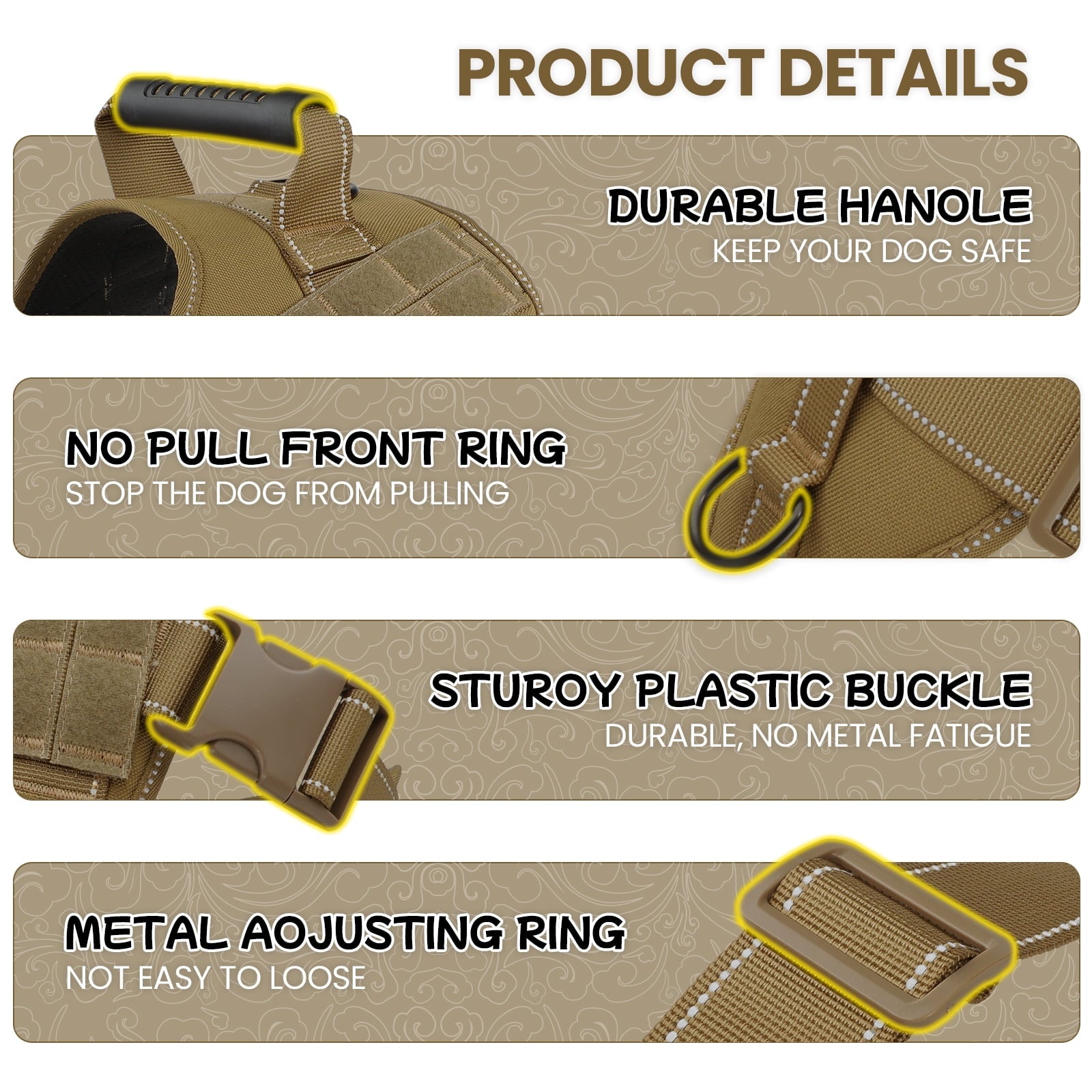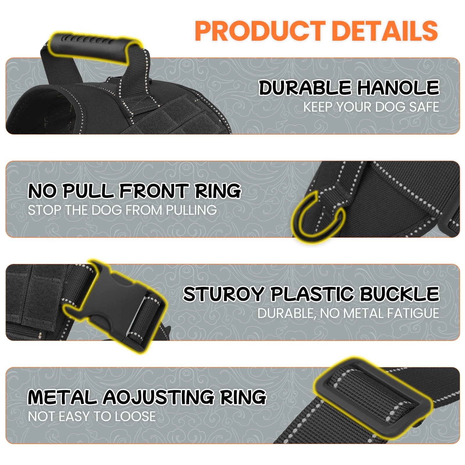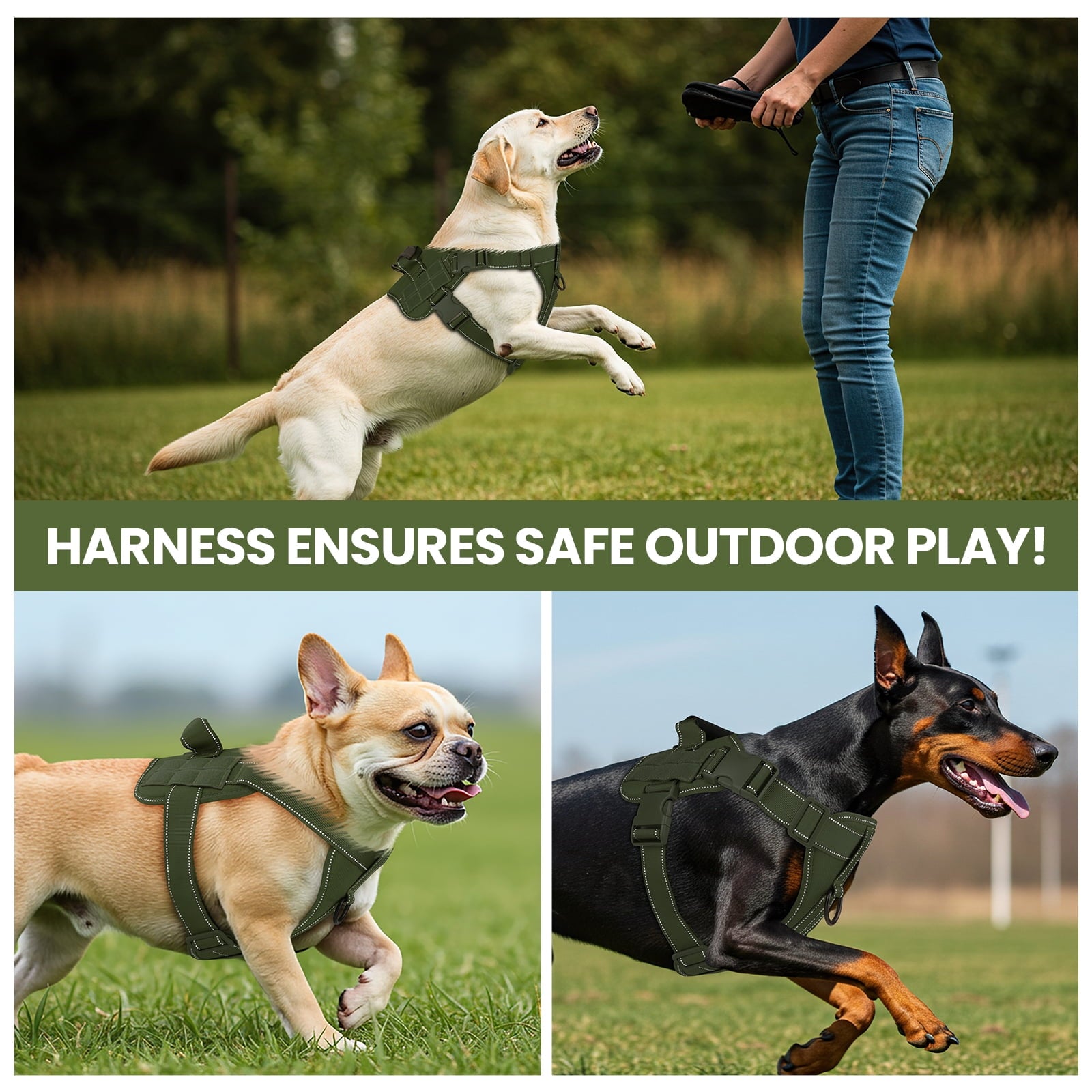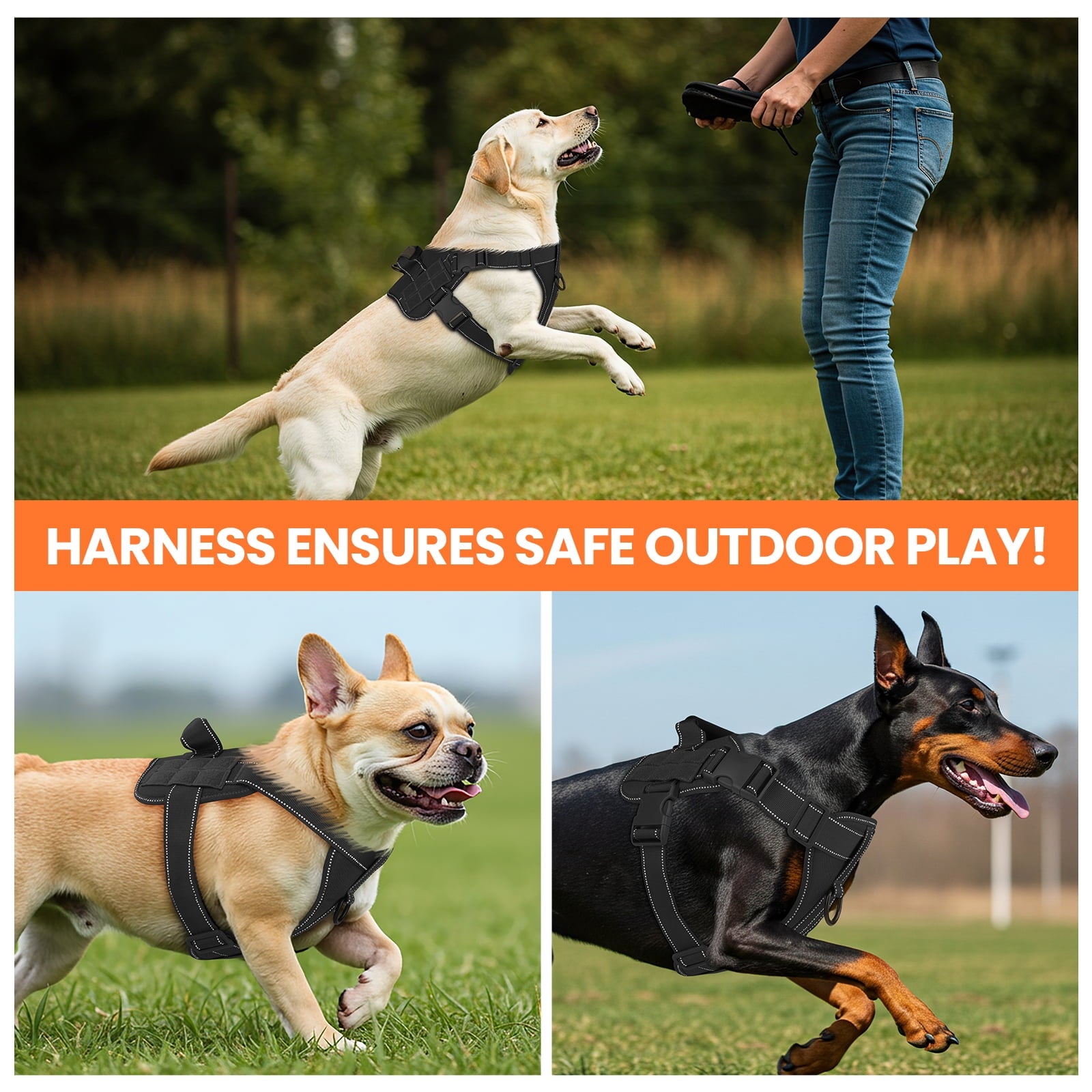 Make every walk a joy with the PcEoTllar No-Pull Dog Harness! Designed for comfort, control, and ultimate convenience, this adjustable harness features quick-snap buckles, a sturdy handle, and breathable materials. Enjoy a secure, no-pull fit with easy on/off in seconds β perfect for active dogs. Reflective straps ensure your pup stays visible and safe on nighttime strolls. Ideal for daily walks, outdoor adventures, training, and more. *- MEDIUM DOG HARNESS: Designed for dogs weighing 21-40 lbs. Neck Girth: 16.73"-22.05", Chest Girth: 20.67"-27.76". Perfect fit for breeds like English bulldog, Pug, Aussie, Daschund, Shiba inu, Border Collie, Doodle, Golden retriever, Russell, Jack Russell, Corgi, and more. *- SUPER COMFORTABLE: PcEoTllar no-pull dog harness evenly distributes pressure across your dogβs chest, preventing choking and discomfort. Made with breathable material and a fully adjustable chest strap, it offers a snug yet flexible fit β ideal for growing dogs and daily wear. *- STURDY HANDLE: The sturdy top handle provides instant grip and control, making it easier to guide your dog during walks or in crowded areas. Great for training, hiking, or assisting older dogs. This dog harness gives you confidence and better communication with your pup. *- MAXIMUM NIGHTTIME VISIBILITY: Built-in reflective strips enhance visibility during early morning or nighttime walks. Attach your leash to the durable D-ring and stay visible in low-light conditions β keeping your dog safe while walking, running, or exploring. *- EASY ON-OFF IN 2 SECONDS: This easy-wear harness slips on/off in seconds β with simple, quick-snap buckles for easy fitting. Perfect for daily walks, outdoor adventures, training sessions, or hiking trips. Whether you're heading to the park or hitting the trail, itβs the ideal all-in-one harness for active dogs.